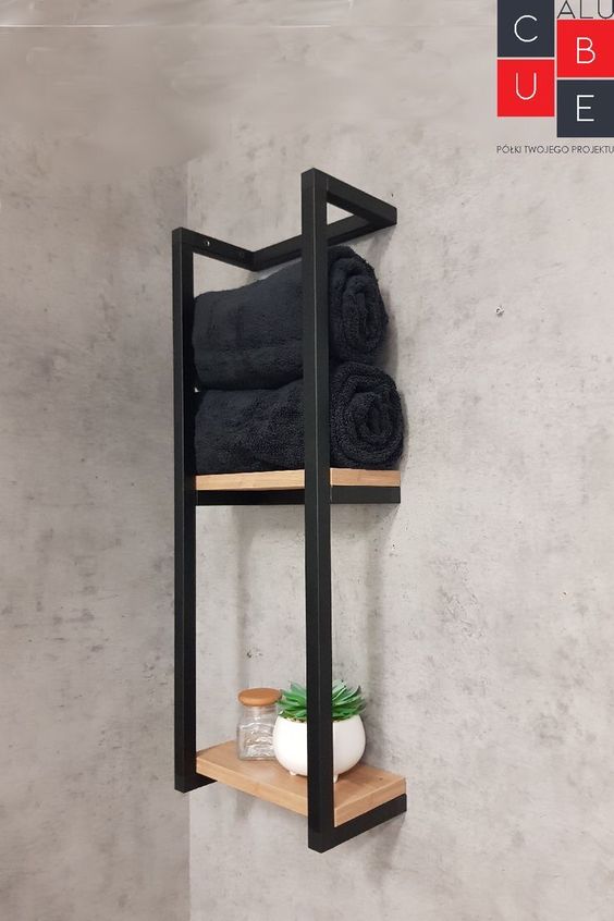 Multi Level Towel With Wooden Shelves, Material: Stainless Steel / Steel, Size: 15cm*30cm*95cm, Coating: PVD Coating / Electrostatic Powder Coating